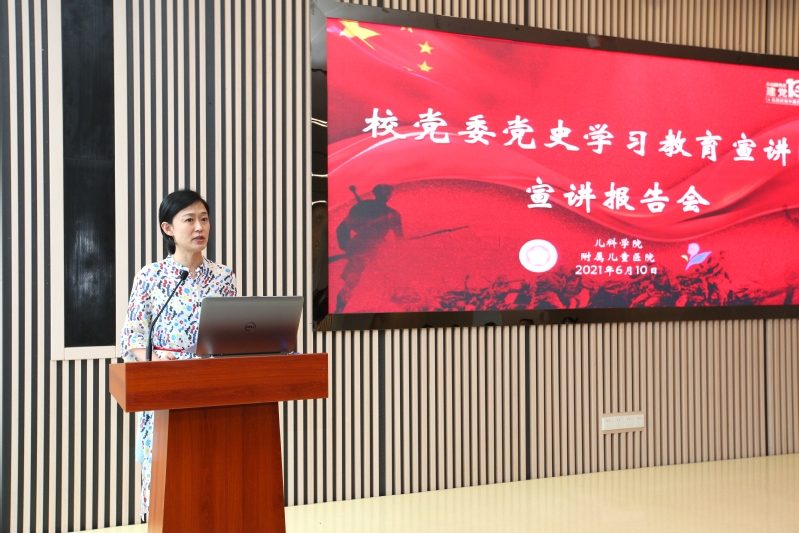 6月10日,为落实校党委在学生中开展党史学习教育进课堂、进公寓、进实习点的“三进”要求,儿科学院邀请校党史学习教育宣讲团成员、校党委常委、宣传部统战部沈瑞林部长到附属儿童医院实习点开展专题宣讲。学院领导、教师党员、附属儿童医院实习点研究生、本科生100余人参加了宣讲会,会议由儿科学院党总支法晓艳书记主持。