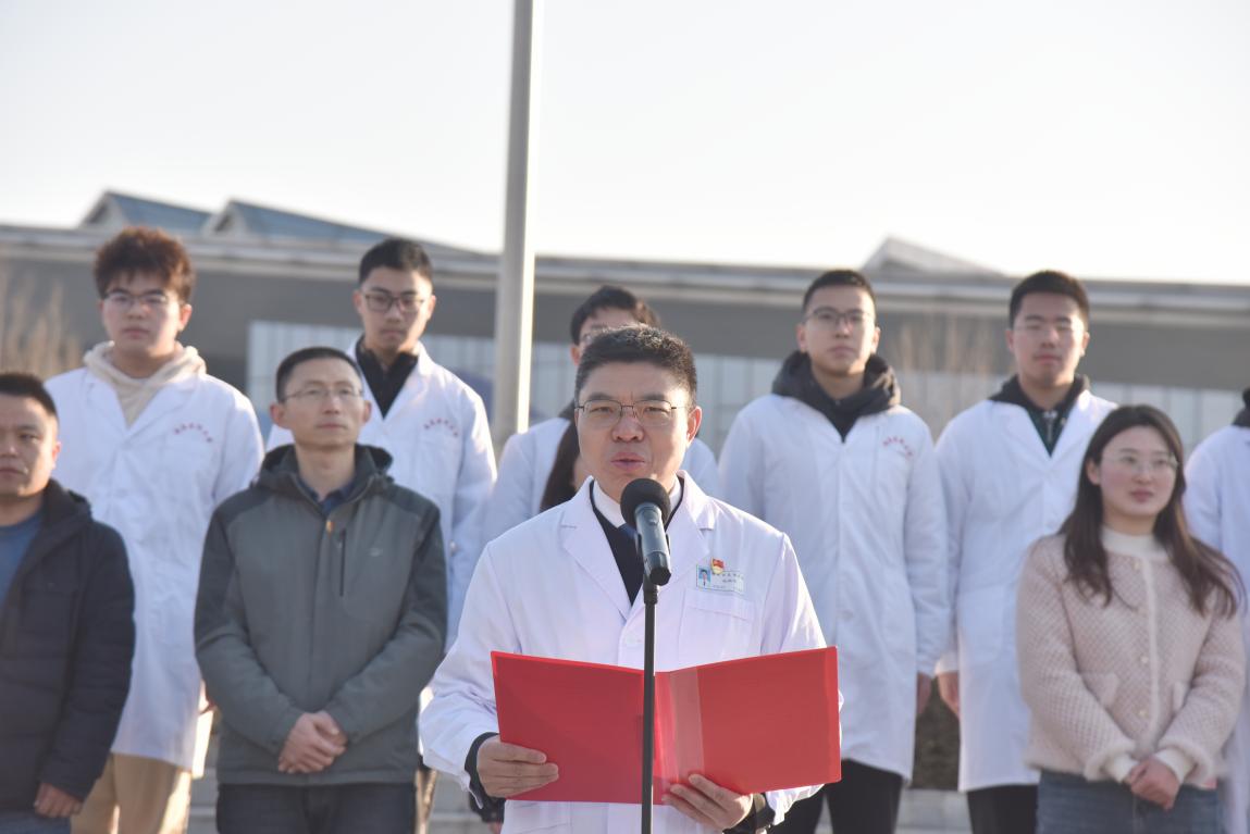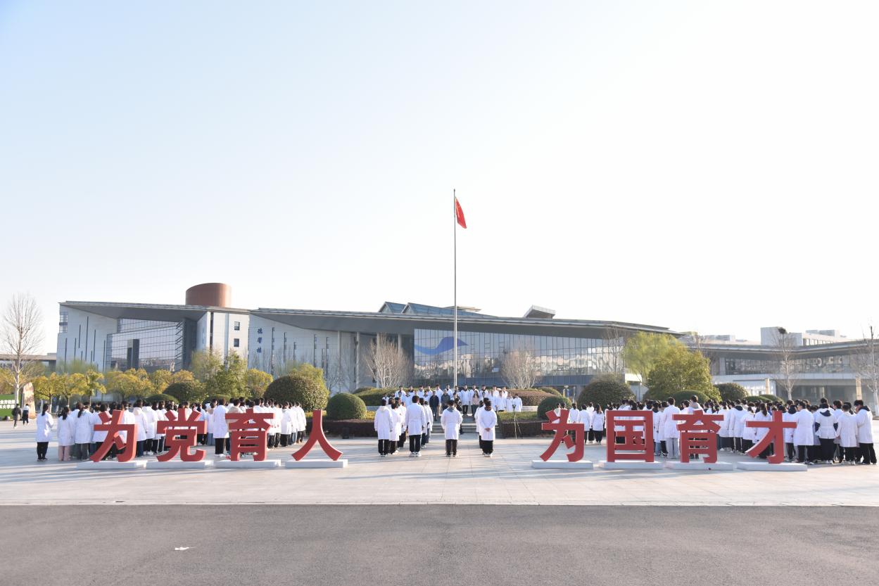 柔和的春光中,五星红旗伴着义勇军进行曲缓缓升起,一众学子注目飘扬的国旗,嘹亮的国歌响彻云霄。朗朗乾坤中,信仰的中国红熠熠生辉;浩浩天地间,洁白的医师服昭昭溢彩。