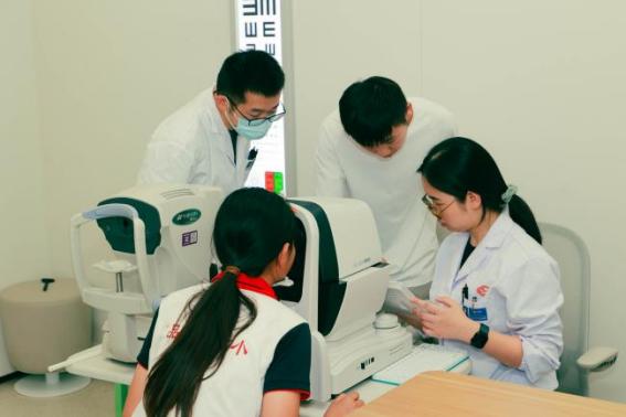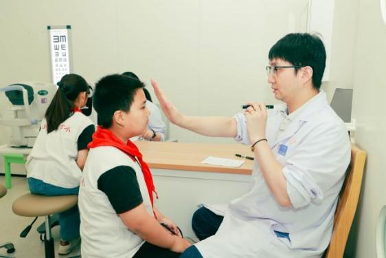 在眼科检查环节,眼科副主任医师吴广强用生动幽默的语言,教授孩子们科学护眼知识,推广“20-20-20”护眼法则,引发阵阵欢笑与共鸣,同时为孩子们带来了专业全面的眼科检查。