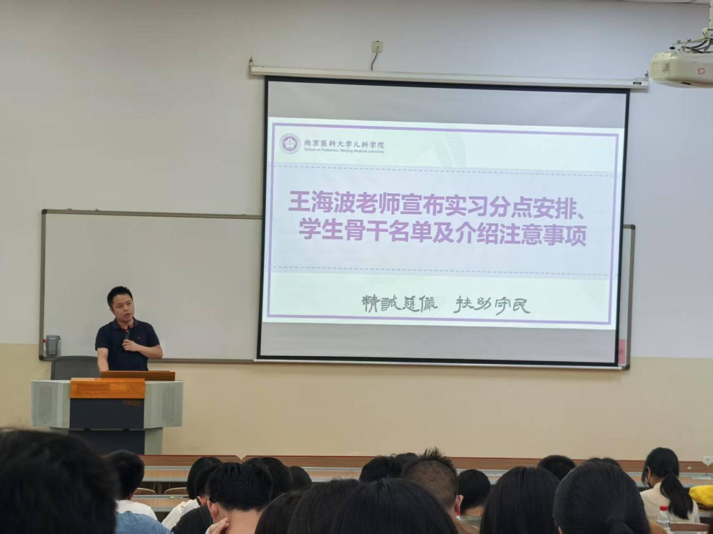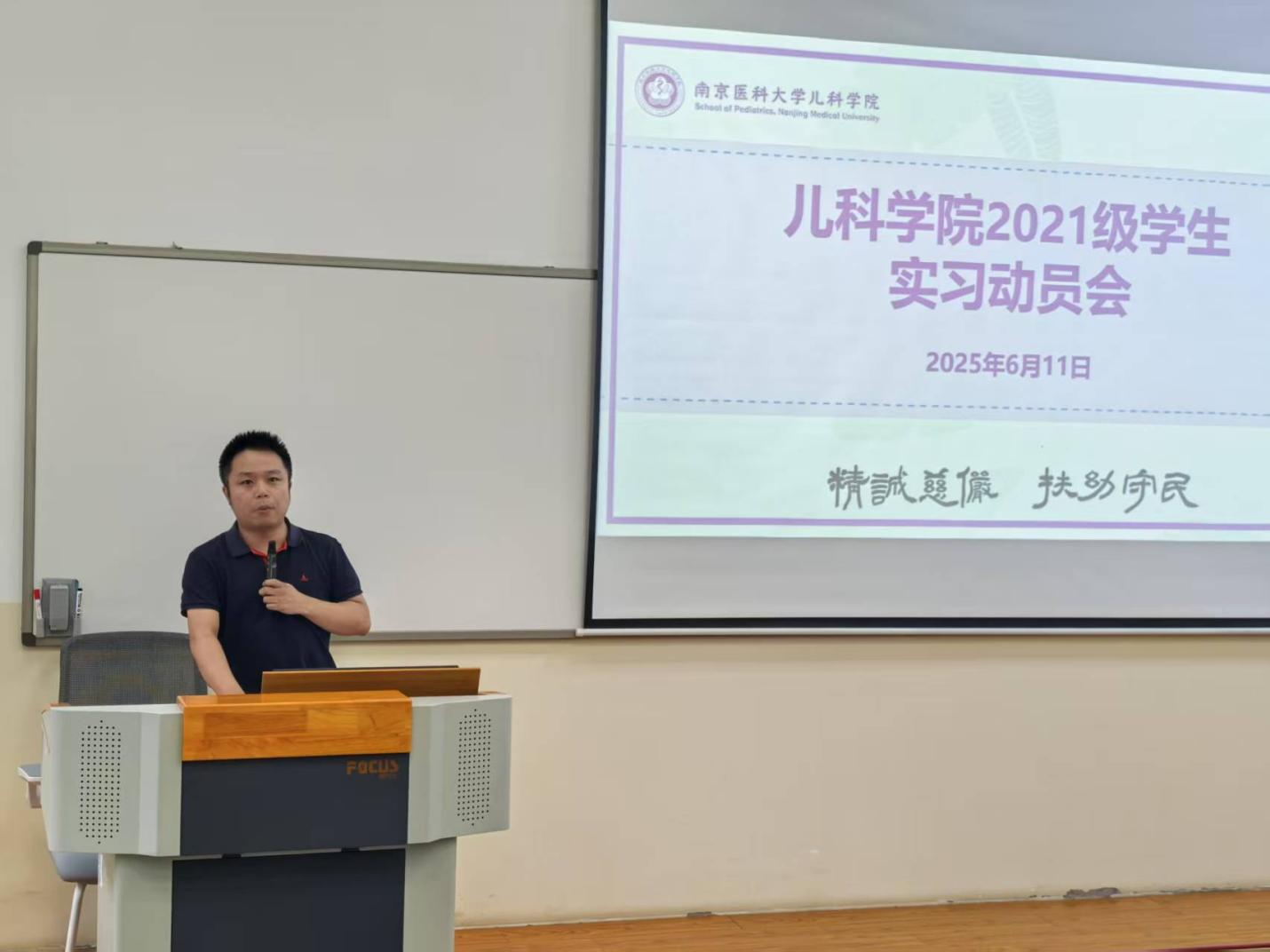 为了让学生认识和理解实习的重要性和意义,明确实习内容与要求,着重强调实习的安全问题,2025年6月11日上午,儿科学院召开2021级学生实习动员大会。儿科学院党委副书记王海涛、教学办主任周小冬、学工办辅导员王海波与2021级儿科学专业全体学生参加。