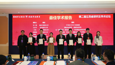 12月24日,由江苏省教育厅指导、江苏省学位与研究生教育学会主办的第二届江苏省研究生学术论坛决赛及颁奖典礼在南京举行。本届论坛创新引入三分钟论文演讲(3MT)、跨学科互评等机制,从突破学科壁垒、强化科研传播能力、提升综合素养三个核心维度,回应新时代研究生培养的现实需求,吸引了来自全省126所高校、科研院所及附属医院的319名研究生同台竞技,围绕多学科领域展开深入交流和成果展示。